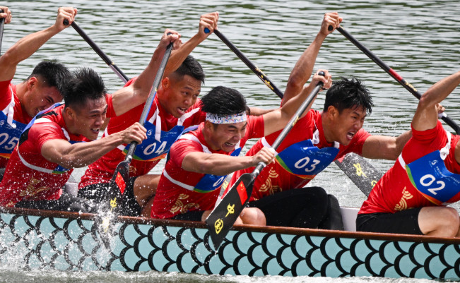 本届亚沙会龙舟阵势分设6个小项,取舍12人龙舟制,共产生男、女100米、200米、400米直说念赛共6枚金牌。男人阵势角逐号称“中泰大战”:中国队赢得2金1银,泰国队赢得1金2银。每次对决都在临了时辰分出输赢。在25日的200米直说念赛中,中国队以0.301秒的渺小弱势惜败泰国队,屈居亚军;在26日的400米决战中,中国男队夺金成绩是1分34秒990,以0.6秒险胜亚军泰国队。